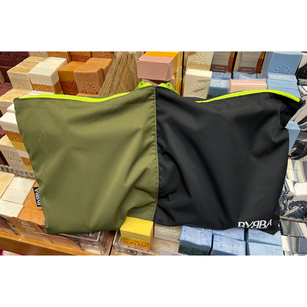 COLOR: SEAWEED & STINGRAY BLACK WITH NEON YELLOW ZIPPERS